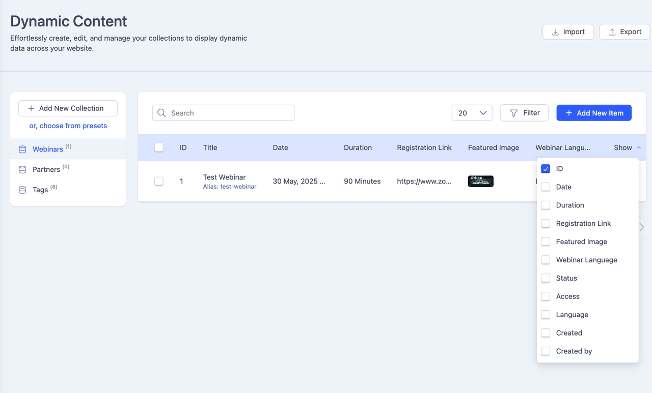Dynamic Content, the show column feature doesn't work. I uncheck columns I don't want to see and they don't disappear like in the tutorial video. I've turned off Cloudflare caching, checked developer console for errors and see nothing, it just doesn't work at all.