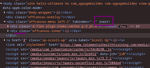 Problem: The .offcanvas-menu element is being rendered with an inert attribute. This prevents users from being able to click on menu links, especially in mobile view.