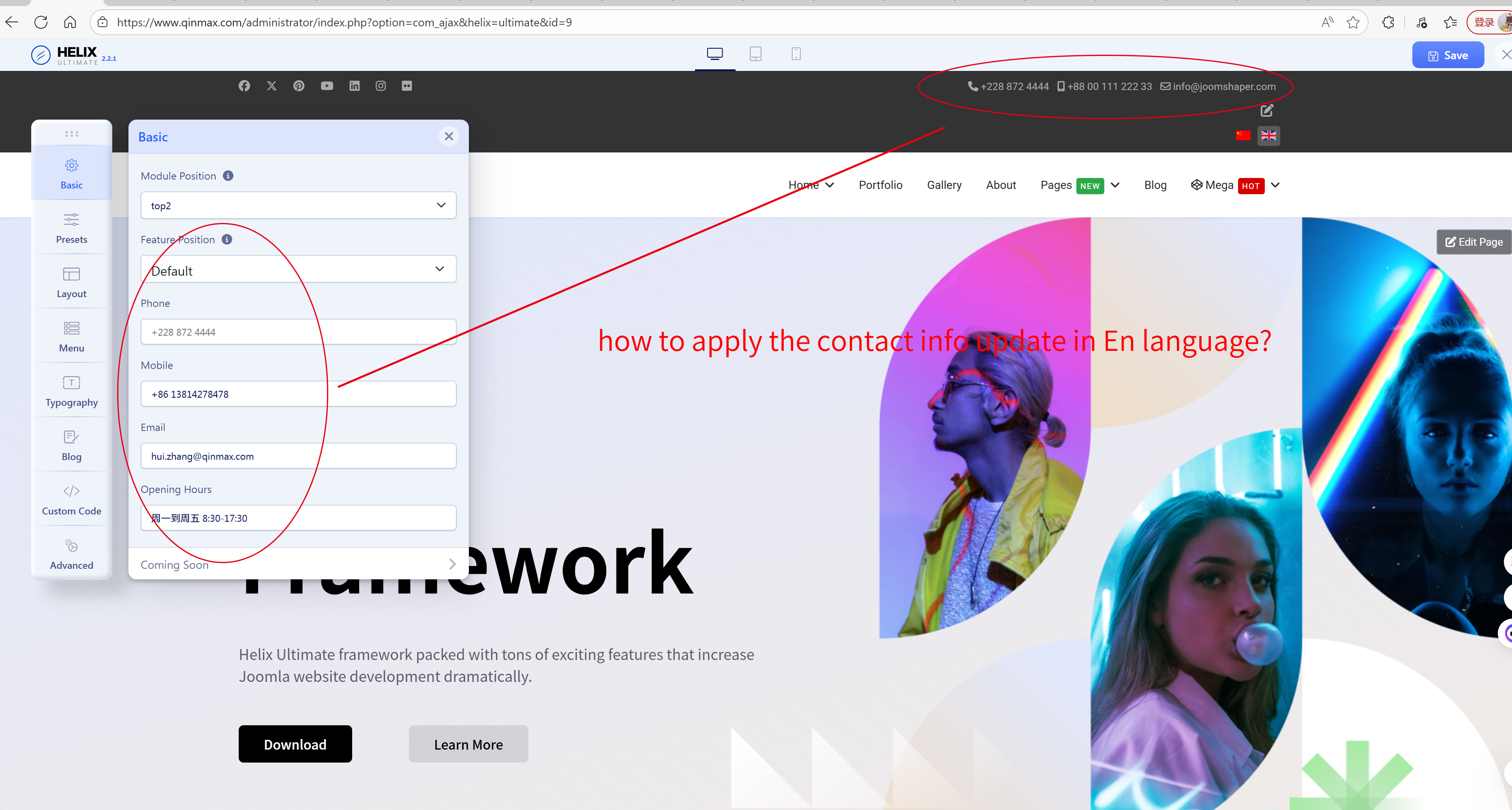 I edit the contact info on the page, but, it seems that the result only applied on the zh-cn language, how to change it on En-Gb language? Every time I opened the basic option page, there is only the zh-cn content in contact info rows.