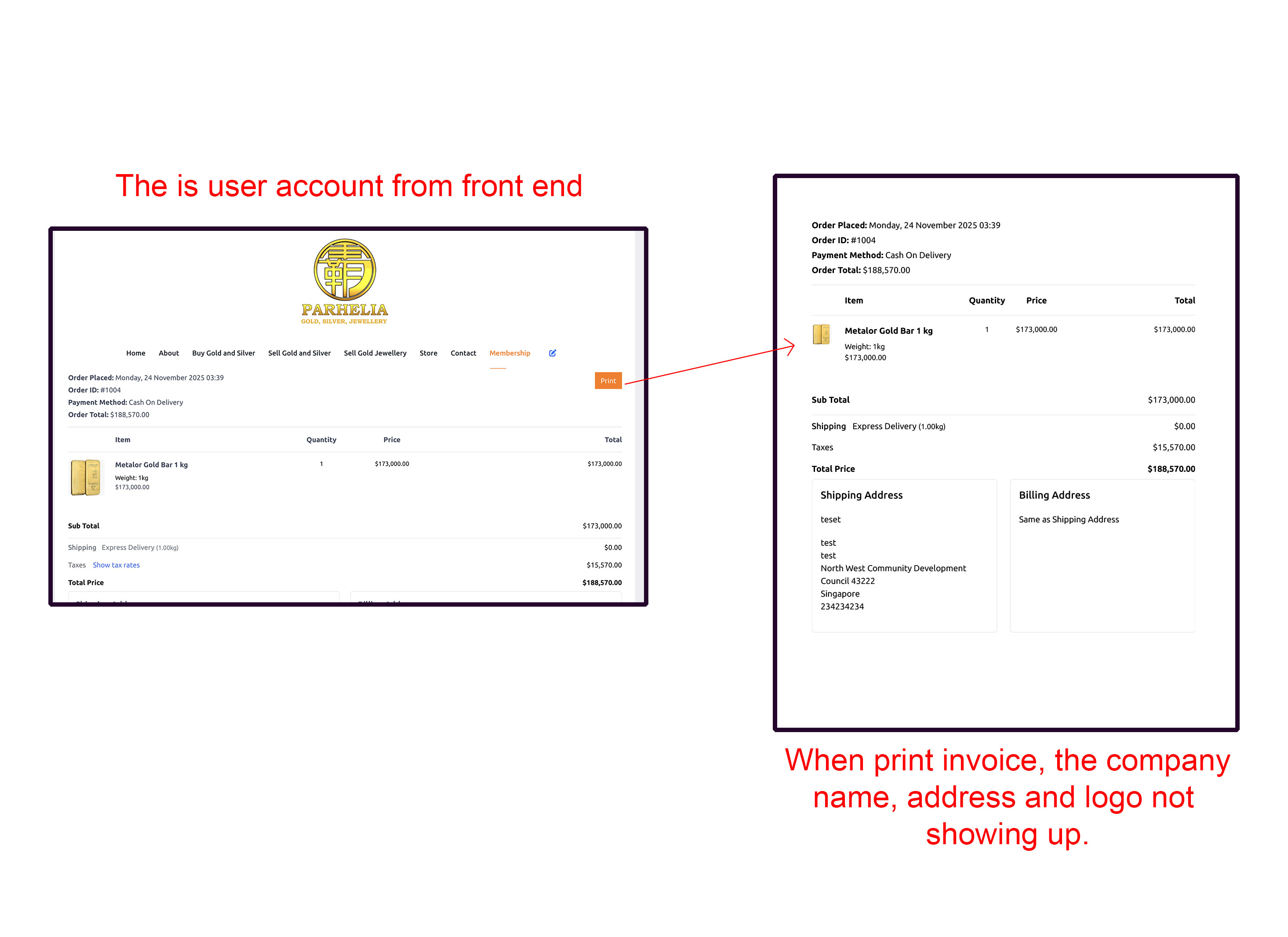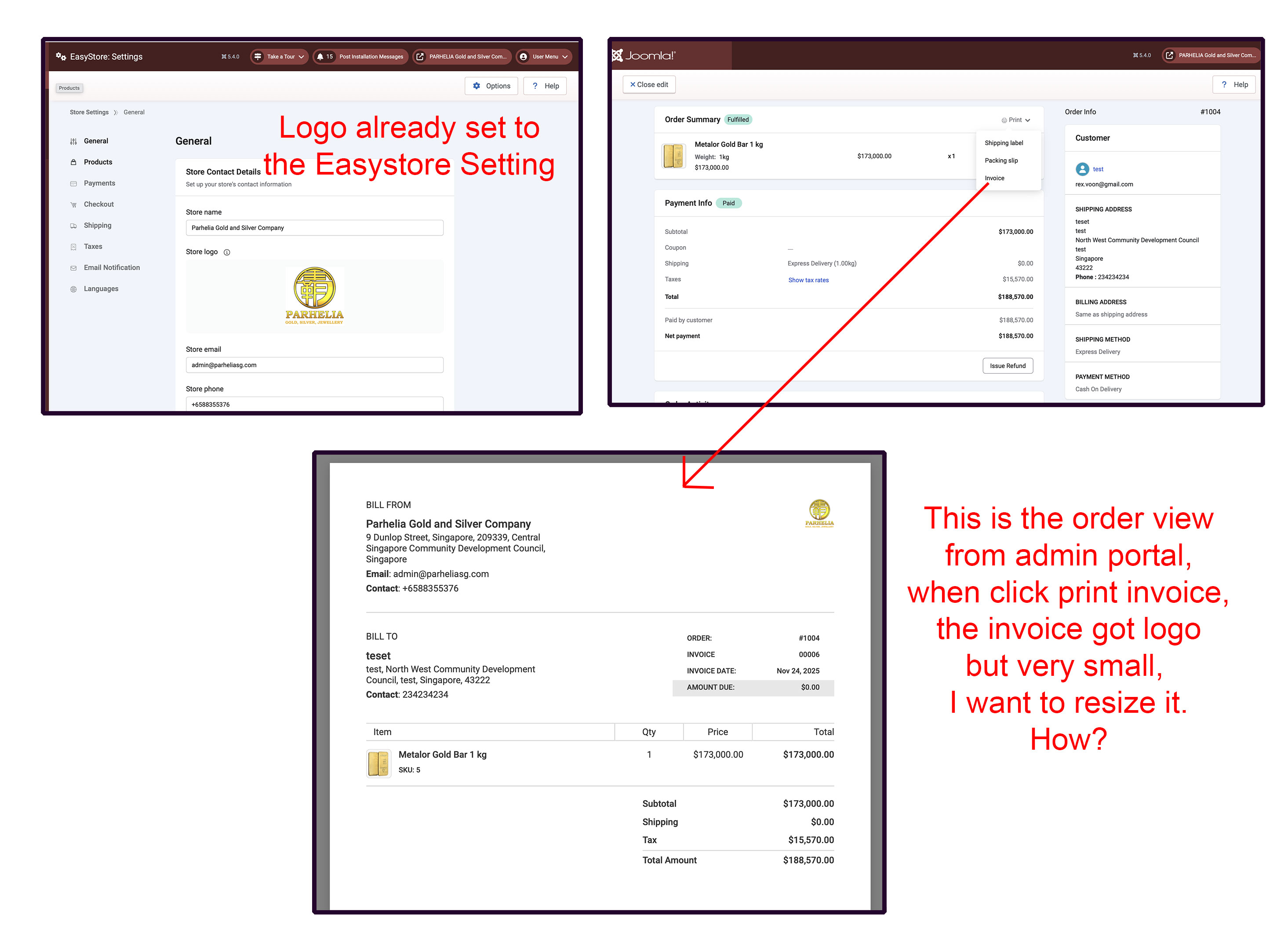 Please go to easyStore → Settings → General and add your store logo. This logo will appear on your invoices. Screenshot: https://prnt.sc/WTLPOwtbQcUa