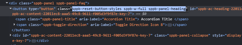 At the moment, SP Page Builder’s Accordion addon doesn’t provide a dedicated CSS Class field per accordion item/title button—only the addon-level styling options are available. Adding a per-item CSS class option would definitely improve flexibility, especially for customizing individual accordion buttons.