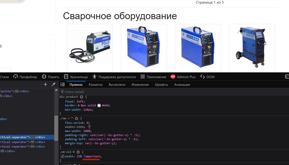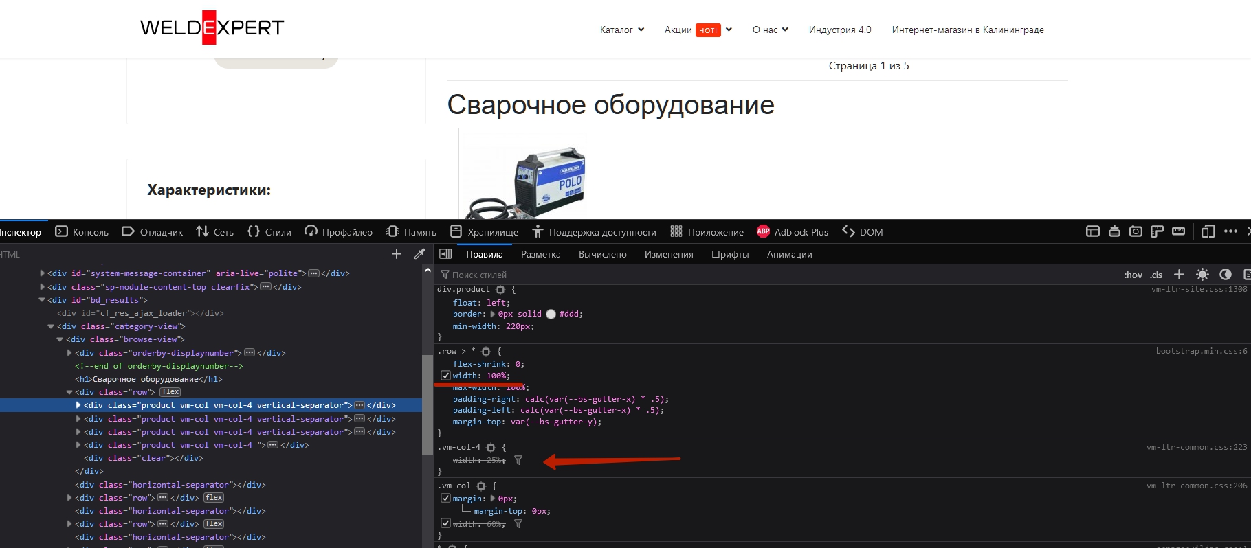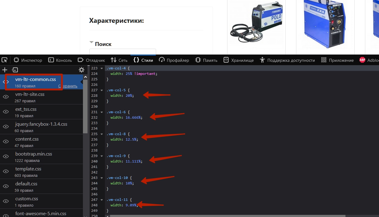 И таки да, более весомый селектор из bootstrap переопределяет код сетки Virtuemart.