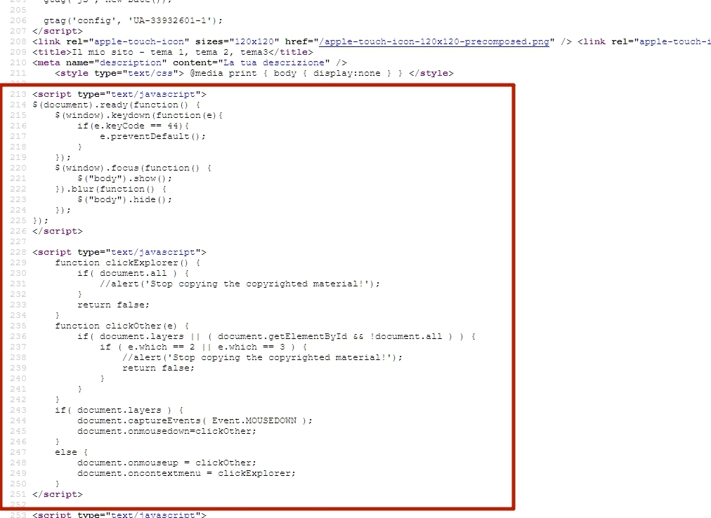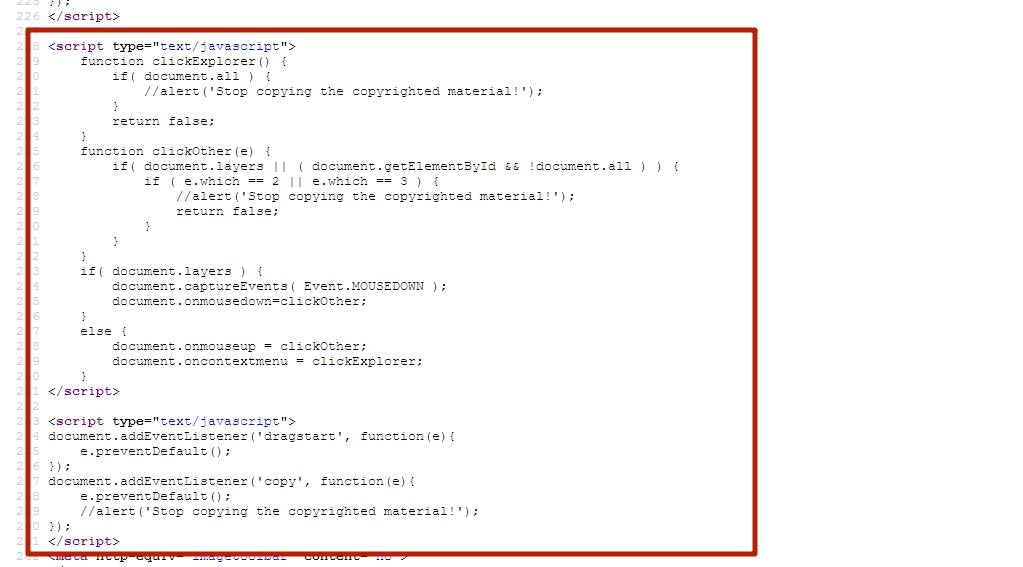 Script for scrolling the page with the keyboard, or a script that prohibits right-clicking, which is completely useless, as you can see in my screenshot (I got to your code anyway and can copy anything ;) ).