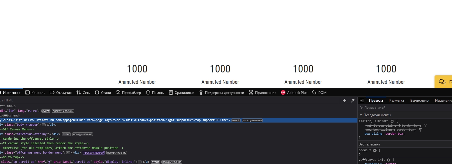 I confirm. There is a problem with an animation based on jQuery. This happens not only in Animated Nambers Addon, but also in other addons for example in Pie Progress Addon. To the animation starts, a shock action is required on the page. For example, press F12.