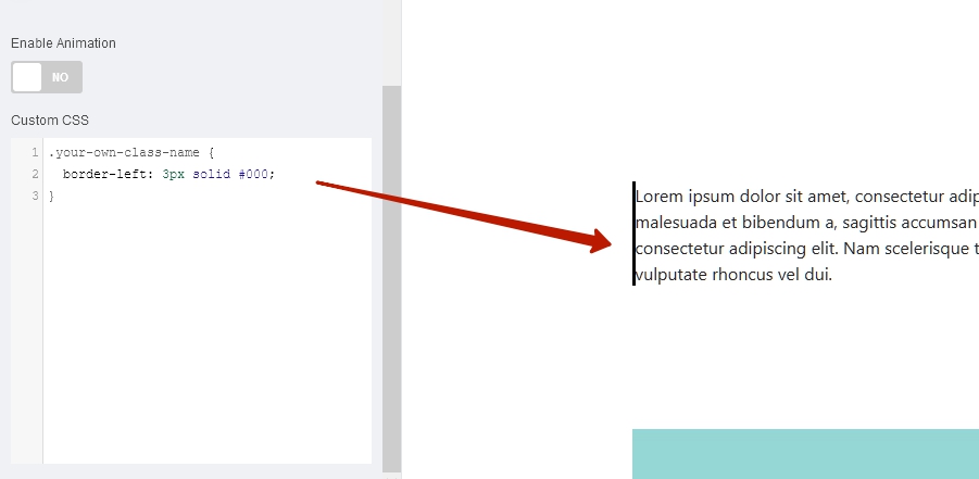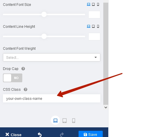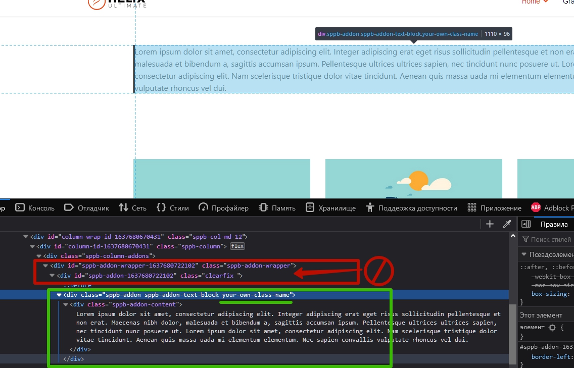 And one more nuance. In this field you can only use the code for your class and its child elements. You can not refer to the addon wrapppers.