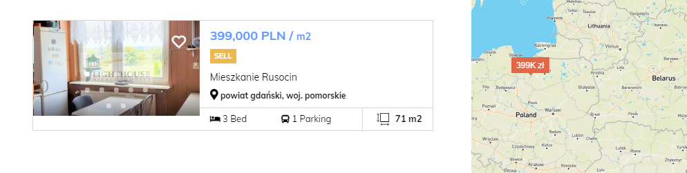 The price on the map is also better - it is not 499K anymore, but now the currency doesn't fit the marker on the map, it is in the second line - I would like to have the price in segments like 1,490,000 PLN (or zł) and of course fitted to the marker size.