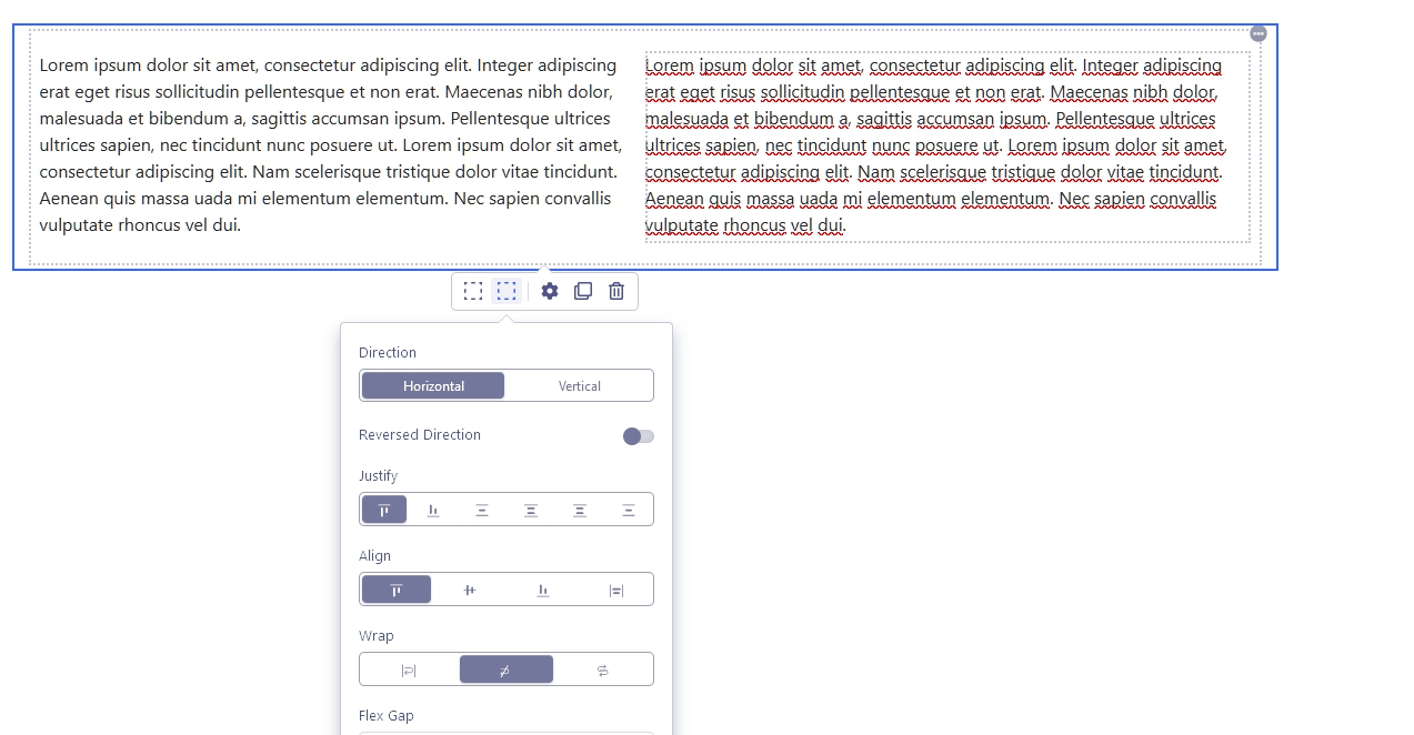 When adding a new section, there are no custom columns settings. Now it is not possible to create multi linear structures.
