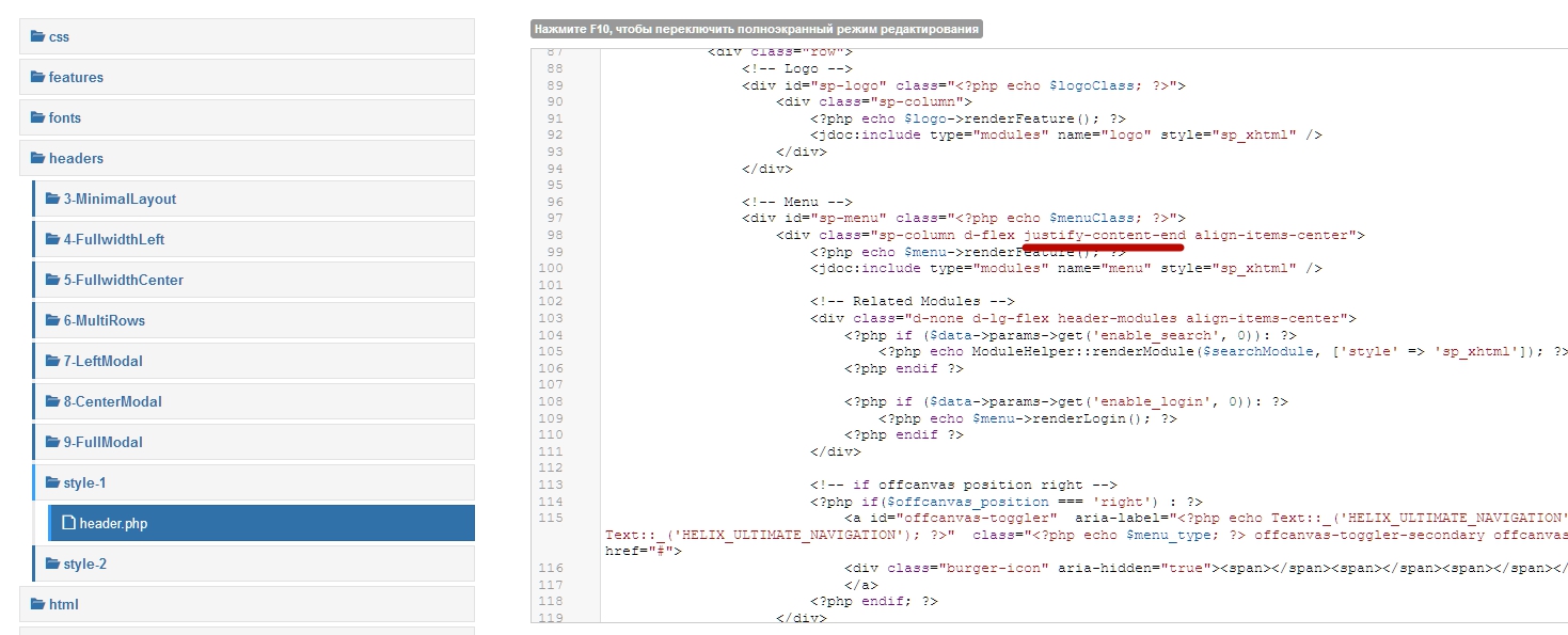 To solve it, it needs to be "justify-content-start". But I cannot find this inside the Helix Ultimate Template, so I think its generated otherwise? But where?