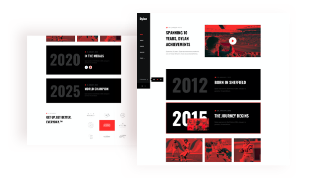 Dylan is an athlete portfolio Joomla template for all kinds of sportsmen including rugby player, footballer, cricketer, and tennis star. With 2 home variations, 2 header designs, and awe-striking pages, Dylan is a complete website package for sportsmen of all categories. Athletes can showcase their experience, training, photos, and more.