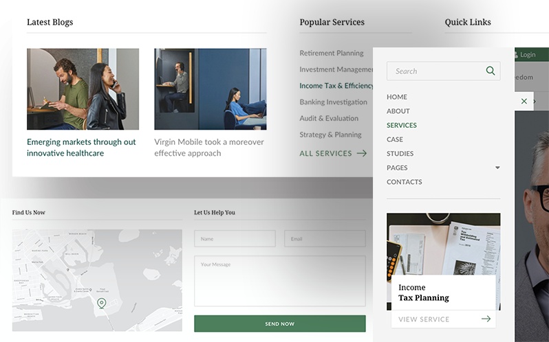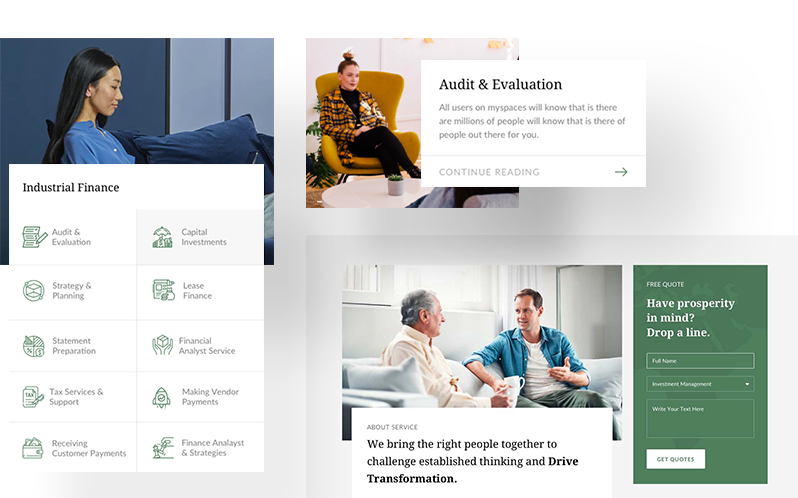 The finance & accounting Joomla template comes with a wide range of built-in pages that you can use to launch any financial website in the least possible time. Everything is ready.
